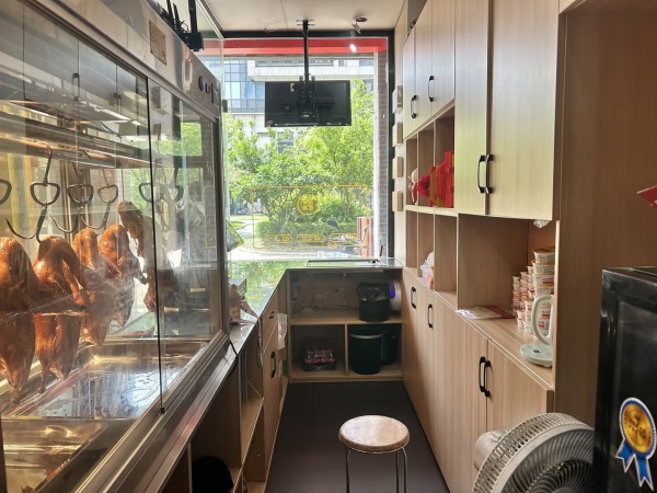 店铺详情: 店铺租金3080元/月,便宜无压力,面积40m²,招牌大气醒目,门面周正,精装修,现经营加盟品牌烤鸭店,堂食+外卖一起,日营业额稳定,店内设备齐全,可整体带品牌转让,也可空转,适合夫妻经营,接手就可营业。