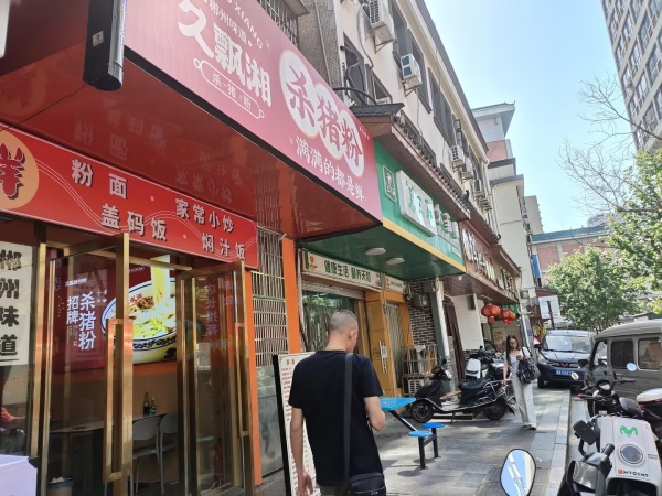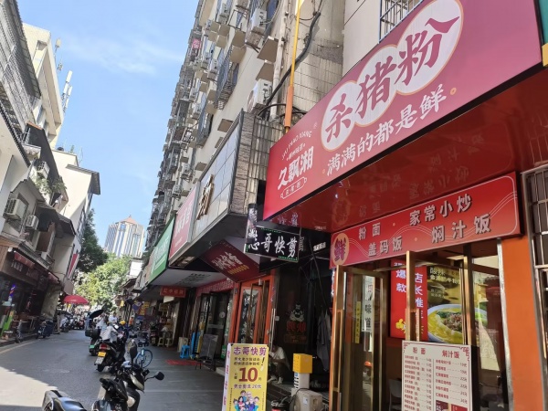 周边优势:旁边是蓝色地标写字楼,四周有世贸环球金融中心、丽都大厦、湘域国际中心、投资大厦、湘域城邦等写字楼,上班族非常多都是在这条街消费,上下班必经之路,不远就是省人民医院,流动人口非常多,附近有中天广场、定王台、五一广场写字楼众多,堂食外卖都好做。周边商场、娱乐场所、宾馆酒店学校医院居民区环绕,客源集中。离芙蓉广场地铁口只有100多米位置优越。这边小吃店集中,商业氛围浓厚。