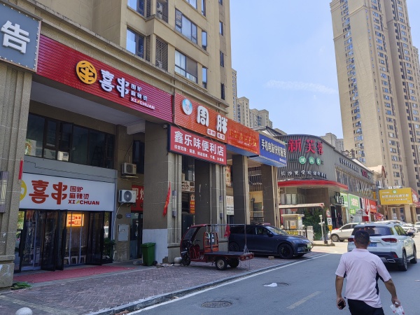 2.房租便宜,有外摆区域,周边几个大型小区环绕。