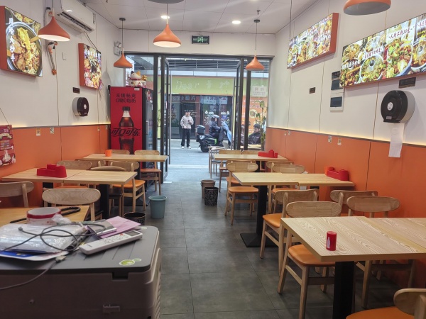 店内设施设备齐全(九成新)美团、 饿了吗、团购、抖音都已开通,线上评分高,口碑好,回头客多,生意稳定。日营业额可达3~4000元左右,门面周正,招牌醒目,位于润和国际广场商业街中心位置,人流密集,流动人口大,设施设备齐全,整体转让,适合各类餐饮小吃。