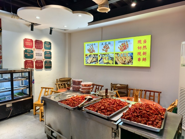 本店门头大气,招牌醒目、特立路茶叶大市场多年老年,店内各设施设备齐全,生意稳定,店铺布局合理,上下两层,一层就有110平,新老客户众多,日营业额五千左右堂食,整体打包,欢迎实际上门考察。