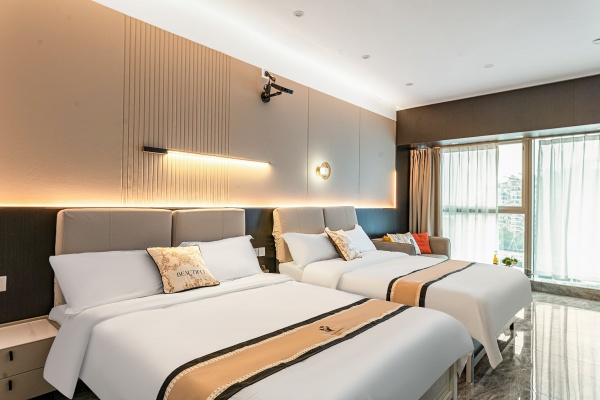 店铺详情:面积950平,房租面议,共有22间客房,分布在两层,方便管理,没有吧台,电梯直达,精装修,中央空调,房间内设备齐全,证件齐全,有厨房,员工房,接手即可经营。携程、飞猪、美团等线上平台都已开通,生意一直很好,每个月效益都挺好,老板有其他项目在忙,现诚心转让,转让费面议。