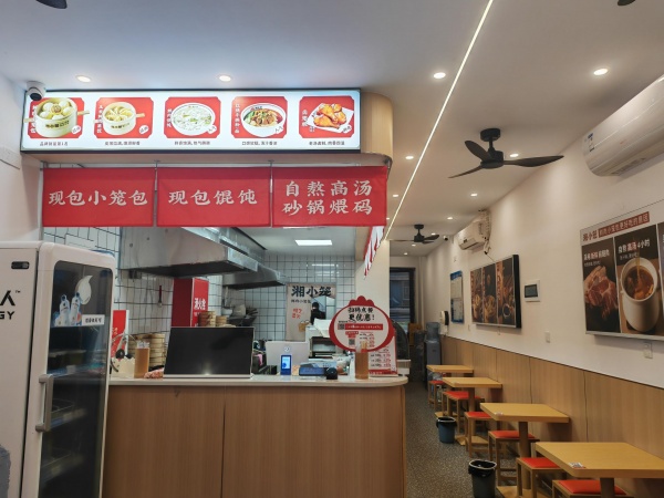 店铺详情: 店铺面积60平方,有阁楼,楼上三间住房,租金6500元/月,以粉面包子为主,做的品牌店湘小笼,现在每天流水还可以,这边人流量最大的一天街,小区出入口也在旁边,有烟管,可以增加盖码饭,这边做盖码饭的店只有一个店,竞争压力较小,店铺全新装修,设备设施齐全,招牌展示面也比较好,门面方正,直通小区里面,适合一家人做,接手即可营业