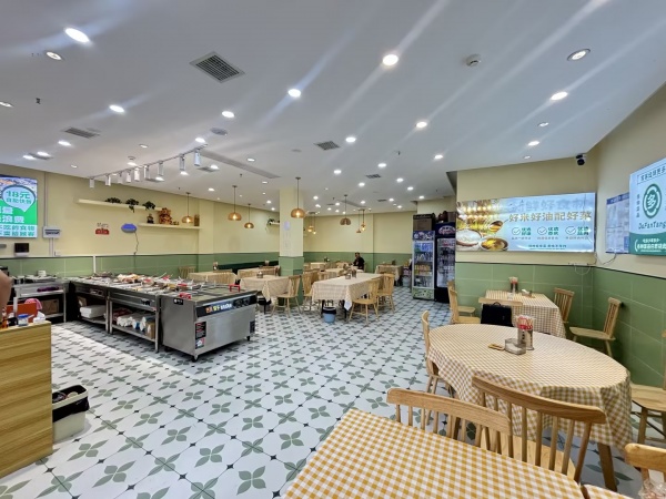 门面周正,招牌大气显眼,精装修,门前可外摆,使用面积大,店内厨房,洗手间,储物间,有天气热,中央空调,油烟设备等所有配套设施齐全,目前经营自助餐,