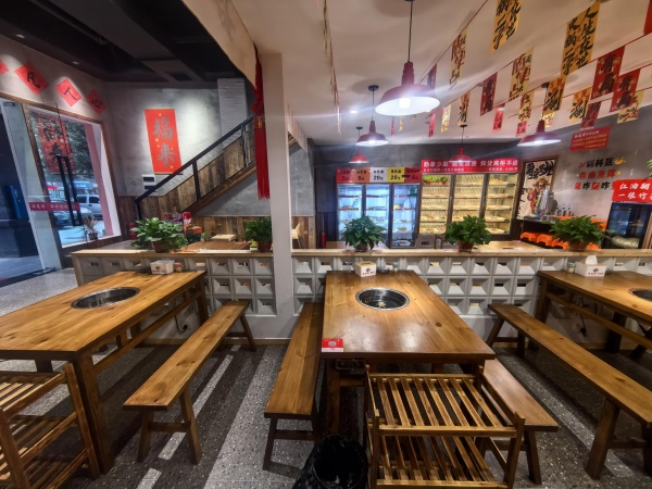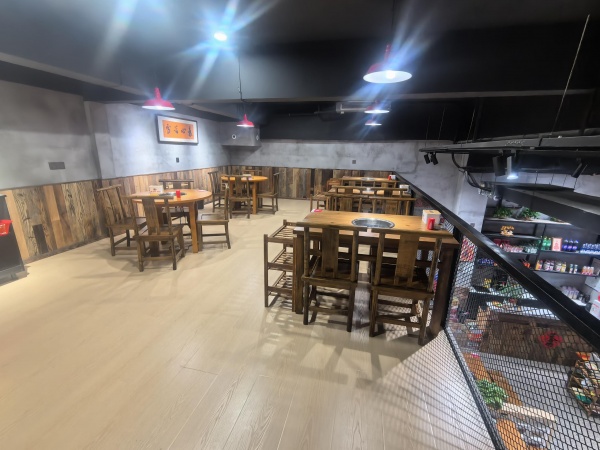 本店一楼使用面积140平,另外三楼还有150平,有五个房间和仓库,目前经营串串火锅,安装了三相电,中央空调,可以摆20桌,也可以做粉面、烤肉、茶楼棋牌等,