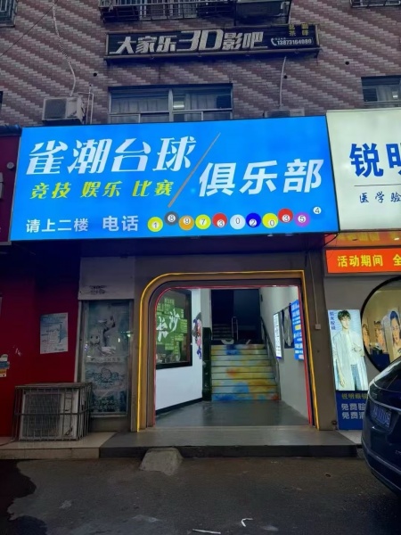 店铺详细情况:面积300平,转让费面议!店内门面周正,招牌大气醒目,装修精美,环境舒适,设施设备证件齐全,共有6张台球桌,棋牌室5间,经营无压力,目前生意稳定,位置好,现整体打包一起出手,接手即可营业➕盈利。