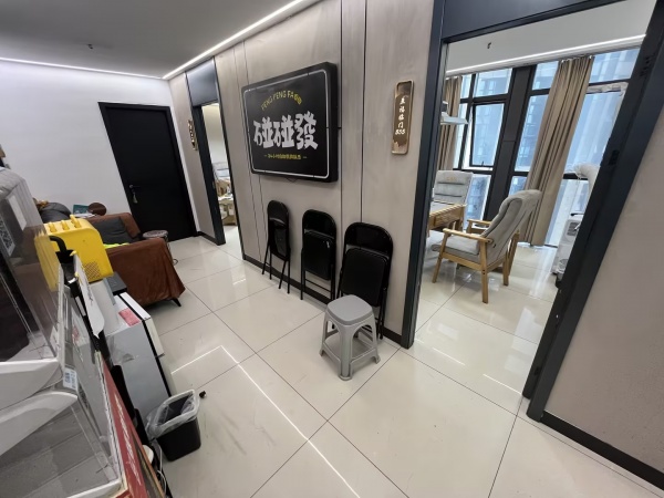 店铺门面周正,招牌醒目,全新精装修,目前做了6个包厢,(目前使用5间)碰碰发品牌标准装修,生意稳定,布局合理,每个房间都配有空调,吸烟净化灯,房间基本带窗户。设备齐全,有稳定的客源,老板现在长期没管理,底价转让。